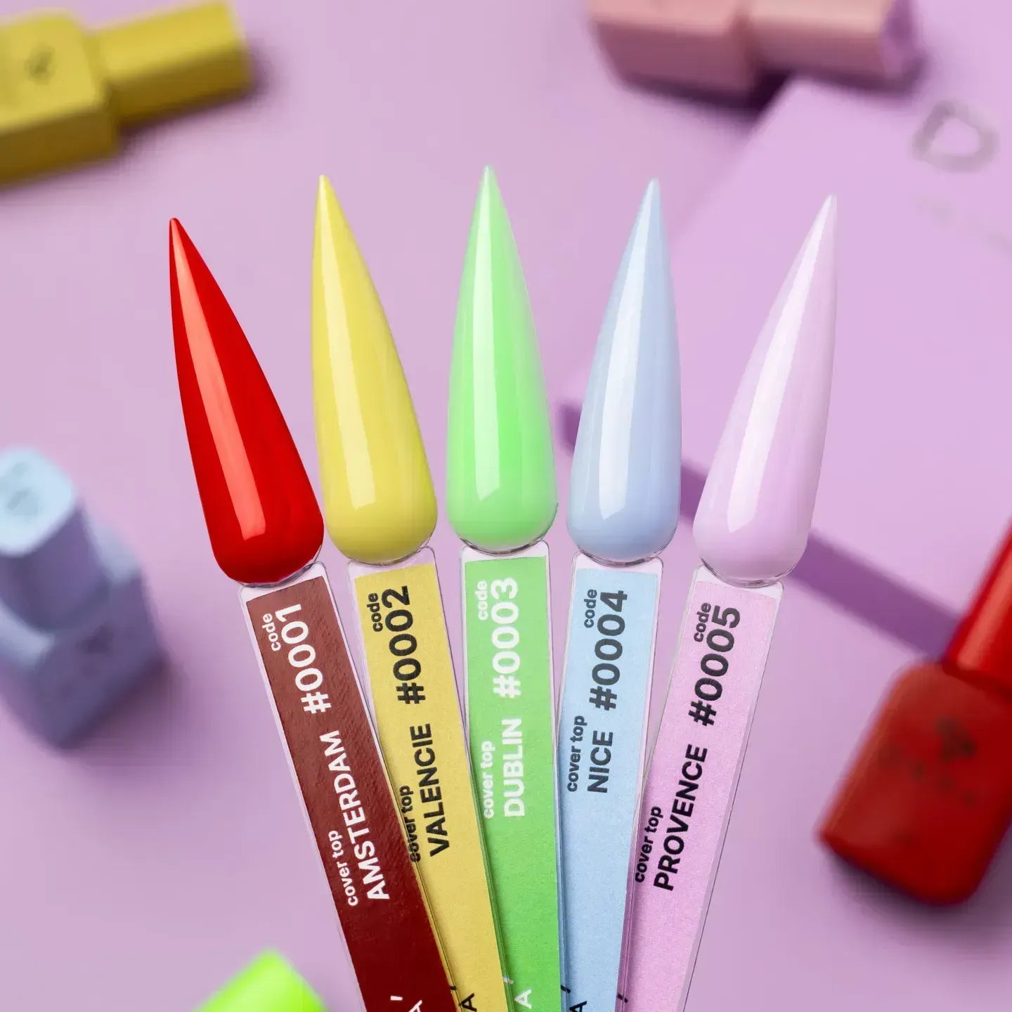 DNKa’ Cover Top Travel Collection is a range of camouflaging no-wipe top coats designed to deliver a flawless finish with enhanced durability. These scratch- and chip-resistant tops feature a medium-to-thin consistency and effectively mask color imperfections and natural nail irregularities, helping save time when creating designs, gradients, and smooth transitions.