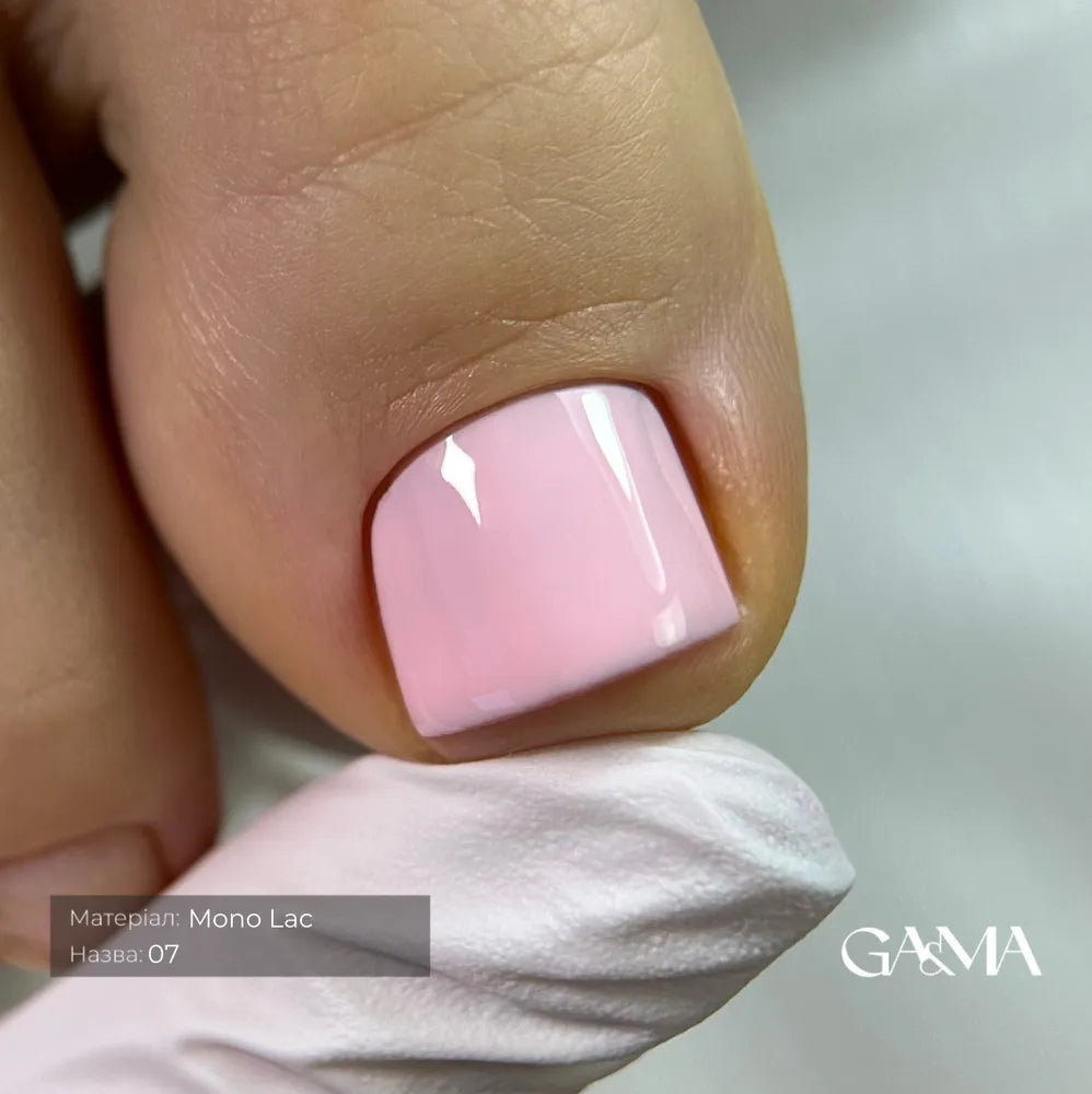 - Note: Mono Lac has a dense, pigmented consistency. One thin coat is usually enough. If the nails are prone to curling or ingrown edges, avoid layering — a single thin coat is recommended.
